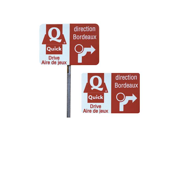 Kit Pré-enseigne 2 faces imprimées + vernis de protection de 150 x 100cm type "Dilite 3mm" avec angles arrondis, 2 rails de fixation au dos, mât 80x40mm x 3ml avec 2 doubles brides pour fixation en recto/verso. Orientation : portrait ou paysage.