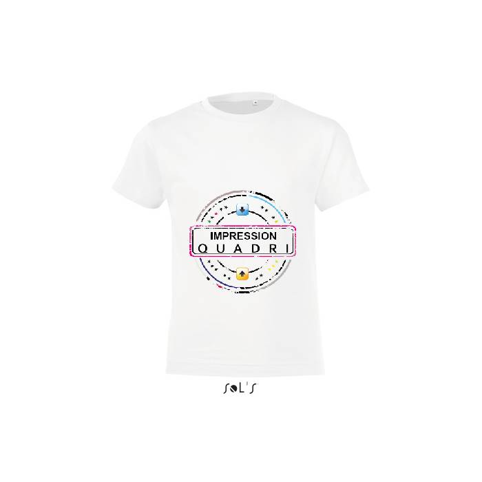 Finitions : Impression numérique quadri sur t-shirt blanc enfant Sol's modèle Régent.