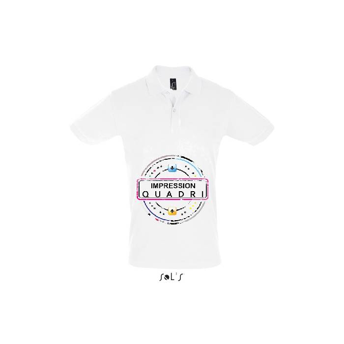 Finitions : Impression numérique quadri sur polo blanc homme Sol's modèle Perfect. Avantages : L'impression numérique haute définition avec blanc de soutien permet un rendu de couleur exceptionnel quel de soit la couleur du polo. Exemples d'utilisation : Vêtements de travail, évènementiels ... Conseils de "pro" : Un lavage des polos à l'envers à 30° permet un maintien de la qualité des couleurs sur du long terme.