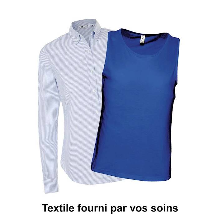 Impression directe quadri sur textile 100% coton fourni pas vos soins. INFORMATIONS OBLIGATOIRES à nous fournir avant livraison de vos textiles : Nombre de pièce par taille et référence - Nom de l'expéditeur - Jour de livraison programmé - Prévoir 1 à 3 textiles supplémentaires (utilisé si nécessaire). Sous réserve de compatibilité des textiles.
