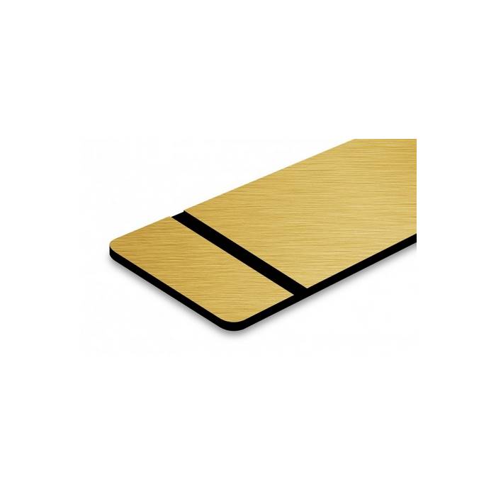 Matière acrylique bi-couche + double face 467 au dos : fond or antique brossé texte noir, résistante aux UV, parfaitement adaptée pour la signalétique intérieure ou extérieure, la réalisation de badges, la signalétique de sécurité...